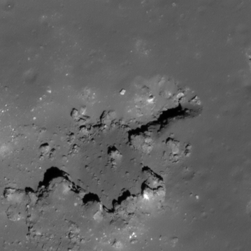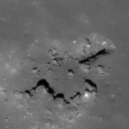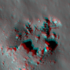 | Desc. | Western of the Jackson 1 pits. Very pronounced funnel. East end opens into a larger depression, ~100m wide, the south side of which is a ~100m long broken boulder (or hill with caprock layer) (it looks like the boulder was impact breccia, and half of it disintegrated and fell into the depression). NW corner may be a smooth slope to the floor. Probable overhang to the east- the (flat) floor is casting a visible shadow in a slewed image looking down-Sun to the east (M105593167L). Funnel is steeper than 39 degrees. |