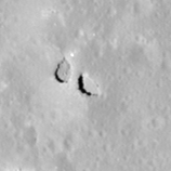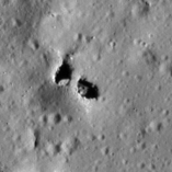 | Desc. | Elliptical pit, southeastern of a pair "separated" by a bridge. Floor slopes from ~2m below E rim to ~5m lower below the S end of the bridge. There is a cluster of 1-5m boulders under the E side of the bridge (there's a 5m-long block directly under the NE edge). No driving access, except by going under the bridge. |