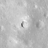 | Desc. | Elliptical pit near the top of a PRF. S wall is a ramp to the floor. N side of floor is a pile of 0.5-3m boulders. Definitely no overhang on the E side; 1-2m overhang on W, but back wall may be visible. There's a similar-diameter but very shallow depression 13m W at the edge of the PRF that, is low-Sun lighting from the E, looks like it could be separated by a bridge. It is not. There are pits ~300m NW and ~280m W. |