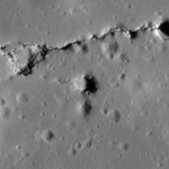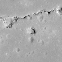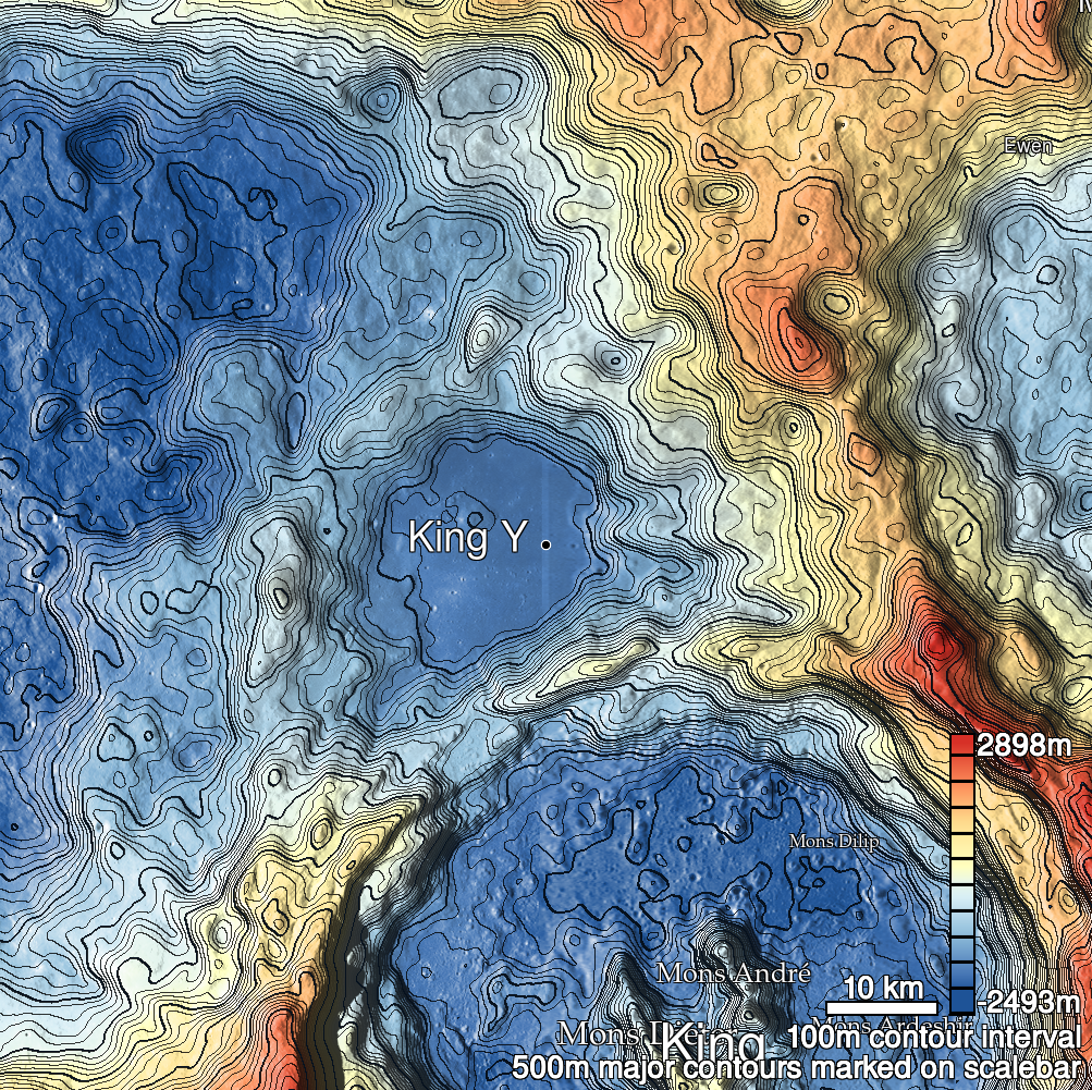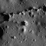 | Desc. | Teardrop-shaped pit between two sets of fractures/fracture-associated pits (~40m N and ~180m S). There are two small (~5m) depressions running W from the W end of this pit to the S corner of a triangular fracture-associated pit in the northern fracture, hinting at a connection. The floor is mostly flat, apparently sloping up in the western third, but does not quite reach the rim. No obvious PRFs, but there may be an extremely subtle (~3m high, ~50m wide) rise immediately to the E. King 40 is ~180m SE. |
