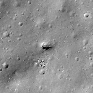| Desc. | An elliptical pit with fairly pronounced funnel. A slope in the NE appears to reach the surrounding surface with no wall. There is an edge of a shadow visible in the slewed image M143194361L that indicates a slight (~1-2m) overhang with no illuminated back wall. Possible fracture with collapses starting ~100m north, possible round-bottomed linear depression ~200m east. |