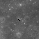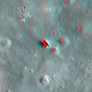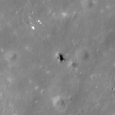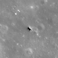 | Desc. | Irregular pit, resolution in well-lit images is too low to make out details. No apparent collapsed walls, although there may be a boulder sticking out of the SW wall. In the middle of a very generic-looking cratered slope. |