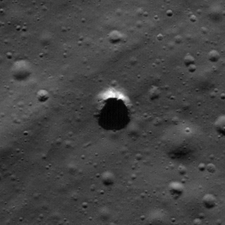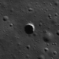 | Desc. | Round funnel. Sun is too low in all images to determine if there are vertical walls. Definitely too deep to be an impact crater. SW-NW trending depression (mostly, but not entirely, consisting of round depressions that may be degraded impact craters) is ~1 radius NE. |
