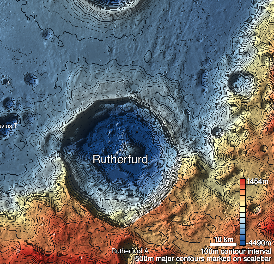 | Uncertain, Impact Melt pit: Rutherfurd | |