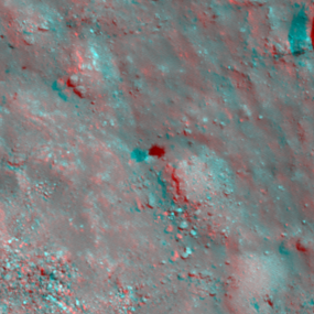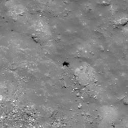 | Desc. | Circular pit at the base of a large (~1km diameter?) PRF. Walls appear vertical, although E side may be protruding slightly. Several smaller (~100m diameter) mounds in the area that look like they were oozed-out piles of melt. There is a 100-150m diameter bowl-shaped collapse ~275m to the NW. |
