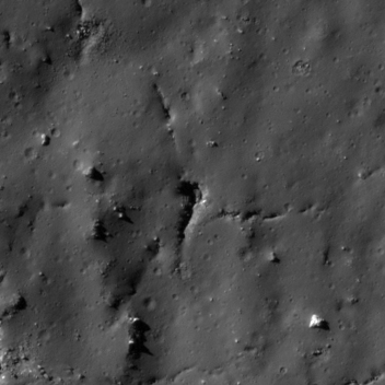 | Desc. | Semicircular pit, possibly fracture-associated (at corner between two small fractures' trends, and there's a depression/fracture running ~20m south). There's a larger series of fractures running N-S ~120m west. Possibly overhang visible in slewed image M188313427L, but don't have a good non-slewed comparison image. |
