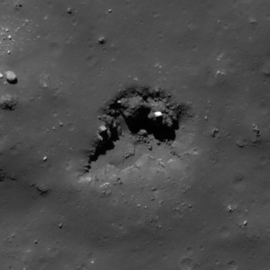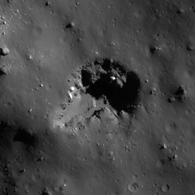 | Desc. | Northern of two large bowl-shaped pits. This one is roughly triangular, with less rubble on the floor. There's a ramp from the SW corner to the floor, but there appears to be a bit of a vertical drop at the top of the slope. Other walls are fairly vertical, but with some gully-like gaps. Much larger funnel than Tycho 17a. |