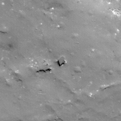 | Desc. | Smaller and more complete of a pair of pits 150m north of the south wall of Aristarchus. The two pits are 35m apart. There are several fractures in the area that roughly parallel the two pits. This pit does not have any collapsed walls, and the floor seems flat, although there might be a slope up to (near?) the rim in the SE corner. |