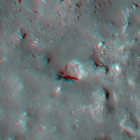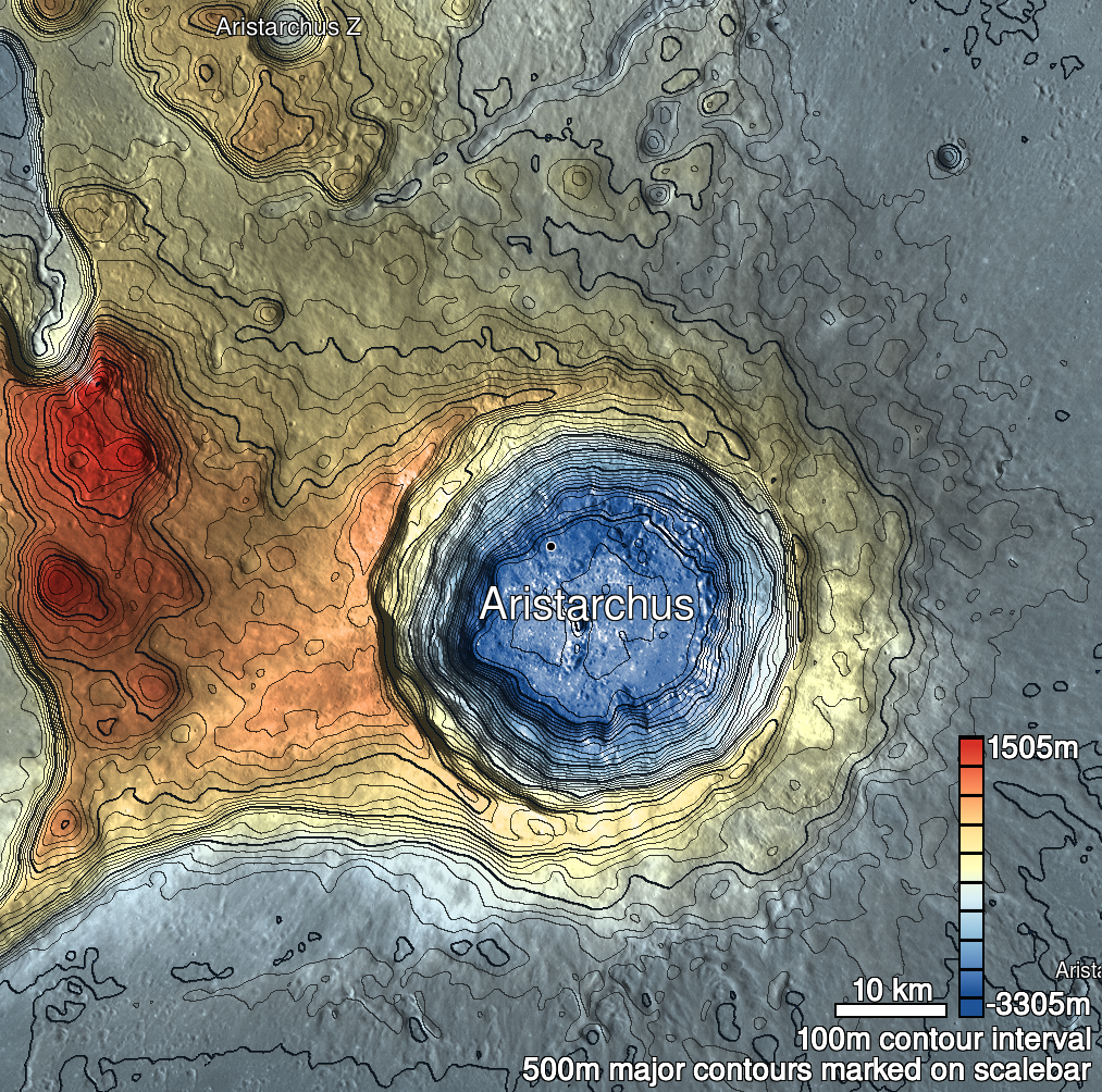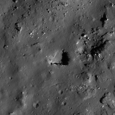 | Desc. | Wide, shallow pit. NW wall is a slope from rim to floor in most places, floor appears to slope up at most/all walls. In a moderately lumpy section of melt. Aristarchus 4 is ~250m NW. |