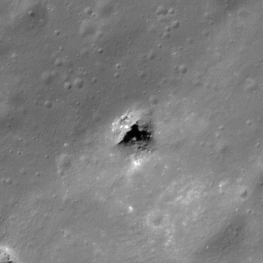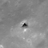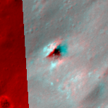 | Desc. | Hard to tell what's going on with this one. It seems to be an irregular depression, with sloped/broken walls on N, E, and W, and possible vertical wall (casting shadow) on south. There may be a ~4m wide inner pit at the bottom. Maybe a smaller version of SW Fecunditatis? |