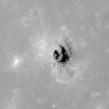 Inner pit on W side of floor of Southwest Mare Tranquillitatis pit. Floor may slope downward to the W. |