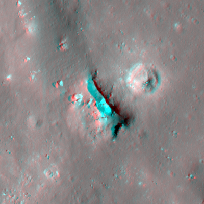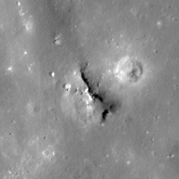 | Desc. | Linear pit at the SSE end of a sinuous/linear depression (~40m wide). The pit itself is not very pit-like- There is a long wall parallel to the depression on the NE, and a short wall perpendicular to the SSE, but the other sides are just slopes running down to a deepest point near the center of the long wall. ~200m north of Copernicus XX. There are some hints that whatever features caused the depression forked here, as there are two very subtle possible depressions to the SSE, one of which houses Copernicus 9 (~200m S) |