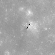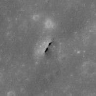 | Desc. | Larger of two pits adjoining a probable bridge. Both pits are very narrow, and at the bottom of a fairly deep (~12m) funnel. No floor is visible. No unambiguously non-impact-caused depressions nearby. |