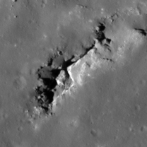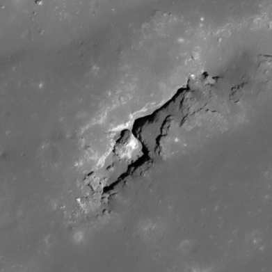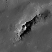 | Desc. | Long pit at the SW end of a linear depression/collapse that runs parallel to the base of a PRF. Consists of two parts: A rectangular section in the SW (~40x25m), and a narrow crevice running from the N corner NE along the N edge of the linear depression (~53x7m). There is a large (~18m) block at the NE end of the floor of the rectangular section that appears to have broken off of the SE wall intact. There is a shallower linear depression running parallel ~75m NW. |