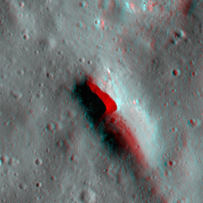 | Desc. | Small linear pit at the NW end of a larger elliptical depression. Exact bounds are hard to determine, as the south end is a very dark material (possibly a slope to inner floor?), and there are some small, very deep depressions just north of the inner pit. On the S end of a ~100m wide mound. Copernicus 14 is ~400m N, Copernicus 13 is ~1km SW, Copernicus X in ~300m W. Roughly in line with a large linear depression that starts ~1km SE. |