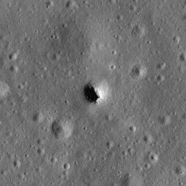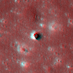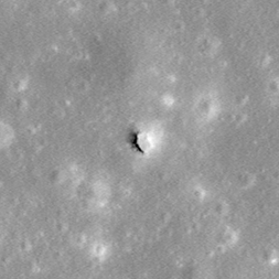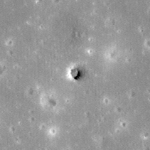 | Desc. | Small cylindrical pit. Floor appears flat, cannot determine if there is any overhang due to small scale. A subdued ridge (tectonic?) runs NNE/SSW ~300m W of the pit. |