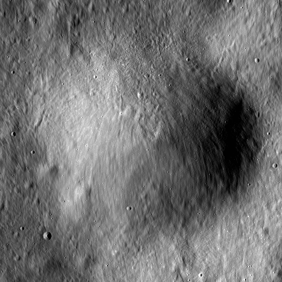 Today's Featured Image highlights the northern portion of the ejecta deposit splashed from an unnamed crater (~2.7 km in diameter, about 5 km south of this image) located in the highlands ~800 km northwest of Mare Orientale. The curved stripes from the bottom toward the upper-left of this image represent the flow direction of ground hugging ejecta deposits.