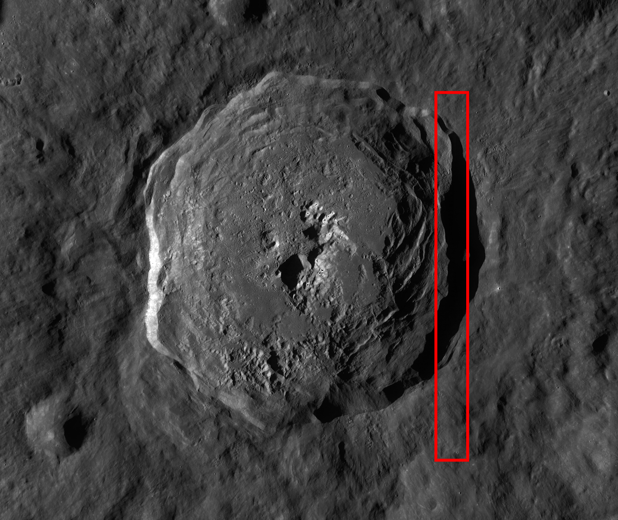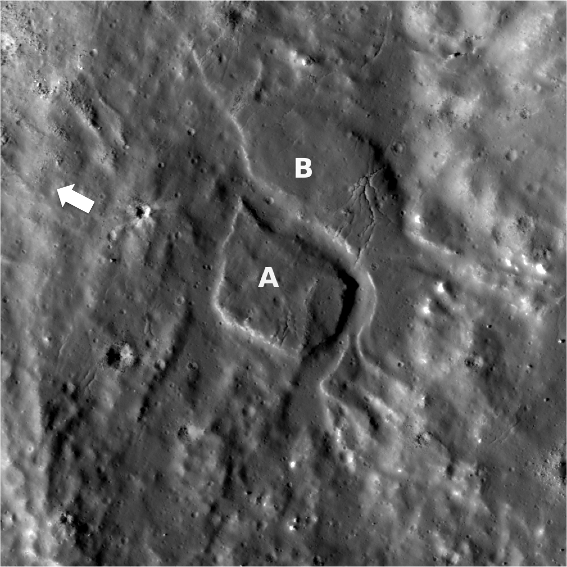 Flowing impact melt may act erosively, removing rock from one location and depositing it in another. This Featured Image shows a section of rock on a terrace in the eastern wall of Jackson crater. The section "A" appears to be severed from the rest of the rock by a small channel. It is probable that fast-moving impact melt created this small channel (on average ~60 meters wide). As the impact melt flowed over the terraces, toward the center of the crater, it gathered enough momentum to flow turbulently and cut through the pre-existing rock. The pointed ends of the isolated section also hint at being eroded by a flow. The pre-existing rock appears to be impact melt as well (deposited by a previous flow), or is covered with a thin layer of impact melt. Usually we only see channels carved through rock in the case of sinuous rilles, which are caused by turbulent flow of basalt.