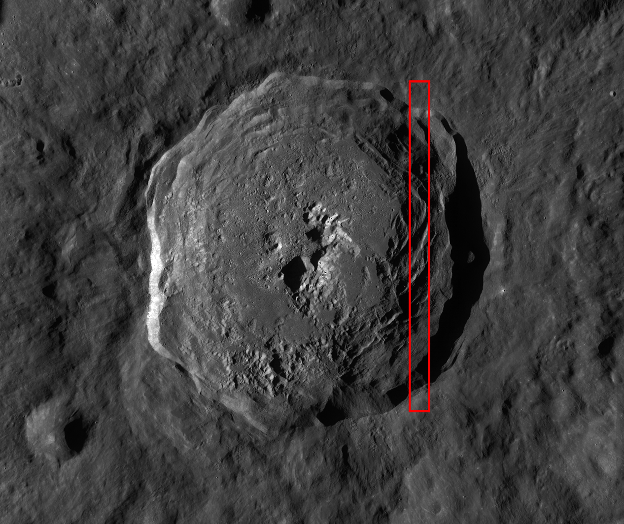 Another beautiful impact melt feature found in Jackson crater! This thin flow of impact melt spreads across the surface of a terrace. The boulders around the edges of the flow may have eroded out of the flow, or were carried there by the impact melt. In the upper right hand corner of the image, there are many large boulders, as well as smooth areas which are impact melt. The impact melt flow seems to originate from that area. Since the large boulders are on top of the impact melt, the impact melt probably landed in the spot first, and the large boulders are a later addition, falling down from a point higher up on Jackson's wall.