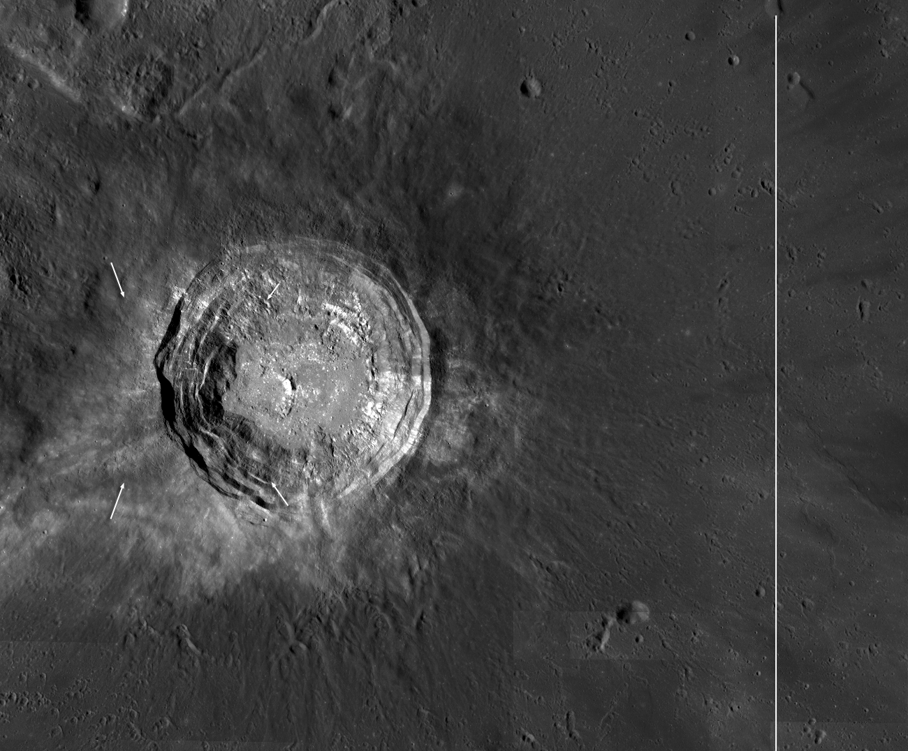 The Aristarchus plateau is one of the most geologically diverse places on the Moon: a mysterious raised flat plateau, a giant rille carved by enormous outpourings of lava, fields of explosive volcanic ash, and all surrounded by massive flood basalts. A relatively recent asteroid (or comet) slammed into this geologic wonderland, blowing a giant hole in the ground revealing a cross section of over 3000 meters (9800 ft) of geology. No wonder planners for the Apollo missions put this plateau high on its list of targets for human exploration. This amazing image was acquired on 10 November 2011 as LRO passed north-to-south about 70 km east of the crater's center while it was slewed 70° to the west. The spacecraft was only 26 km (16.2 miles) above the surface; about two times lower than normal. For a sense of scale, that altitude is only a little over twice as high as commercial jets fly above the Earth!