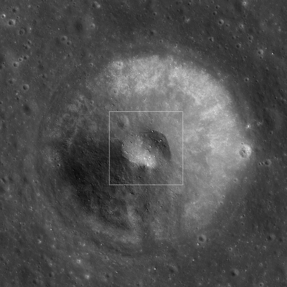 Several additional similar features can be found when examining the full NAC frame. The following posts show examples of other small craters: Brayley G, Fresh Bench Crater in Oceanus Procellarum, and Crater Covered with Boulders!