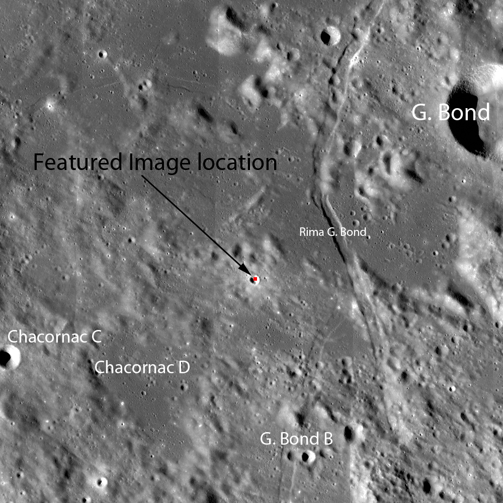 Examine the full NAC image for additional occurrences of impact melt and other features. More examples of small, young craters can be found in Featured Image posts Brayley G, Recent Impact in Oceanus Procellarum, and Farside Impact!