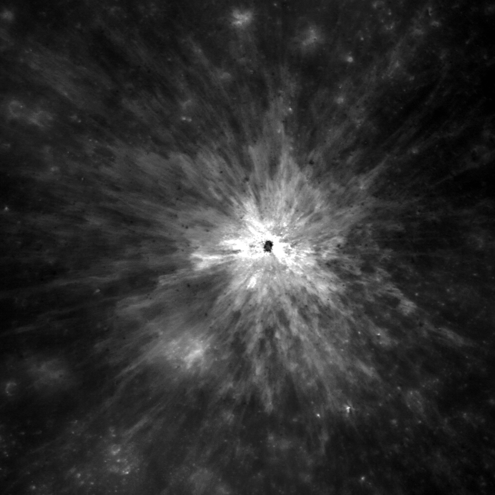 A crater on the northern rim of Hyginus crater (exact location: 7.896°N, 6.229°E, diameter of 145 m) excavated low reflectance material. Deposits of pyroclastics are located around Hyginus Crater, so the low reflectance material is most likely from a layer of pyroclastics buried beneath the lunar surface. The same eruption that emplaced the pyroclastics also likely created an empty cavity beneath the surface, which then collapsed, forming Hyginus Crater!