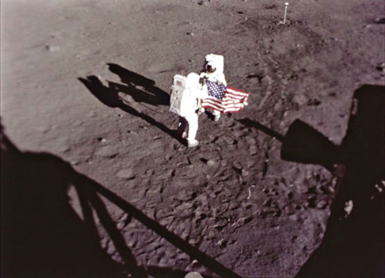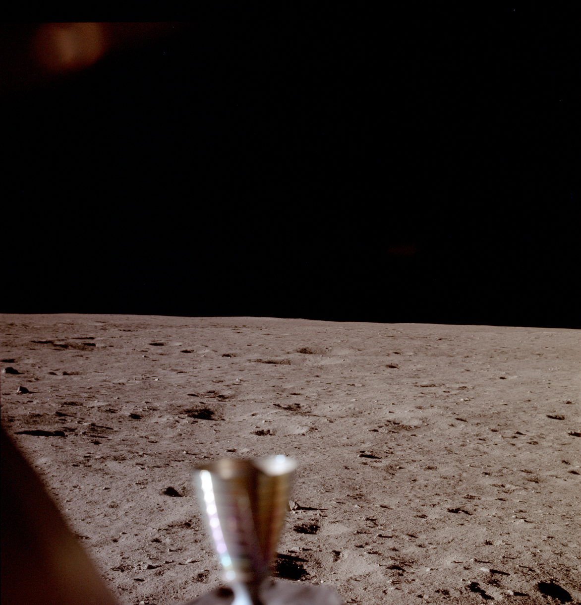 Shortly after completing the contingency sampling, Armstrong noted the magnificent scene before him: "It has a stark beauty all its own. It's like much of the high desert of the United States. It's different, but it's very pretty out here." Buzz joined Neil on the surface and shortly they raised the United States flag and then unpacked, and setup sophisticated science experiments (Early Apollo Scientifc Experiments Package, EASEP) and collected a comprehensive set of samples (one of the greatest science bonanzas ever!). You can easily find the EASEP hardware in the LROC images, just south of the LM descent stage.