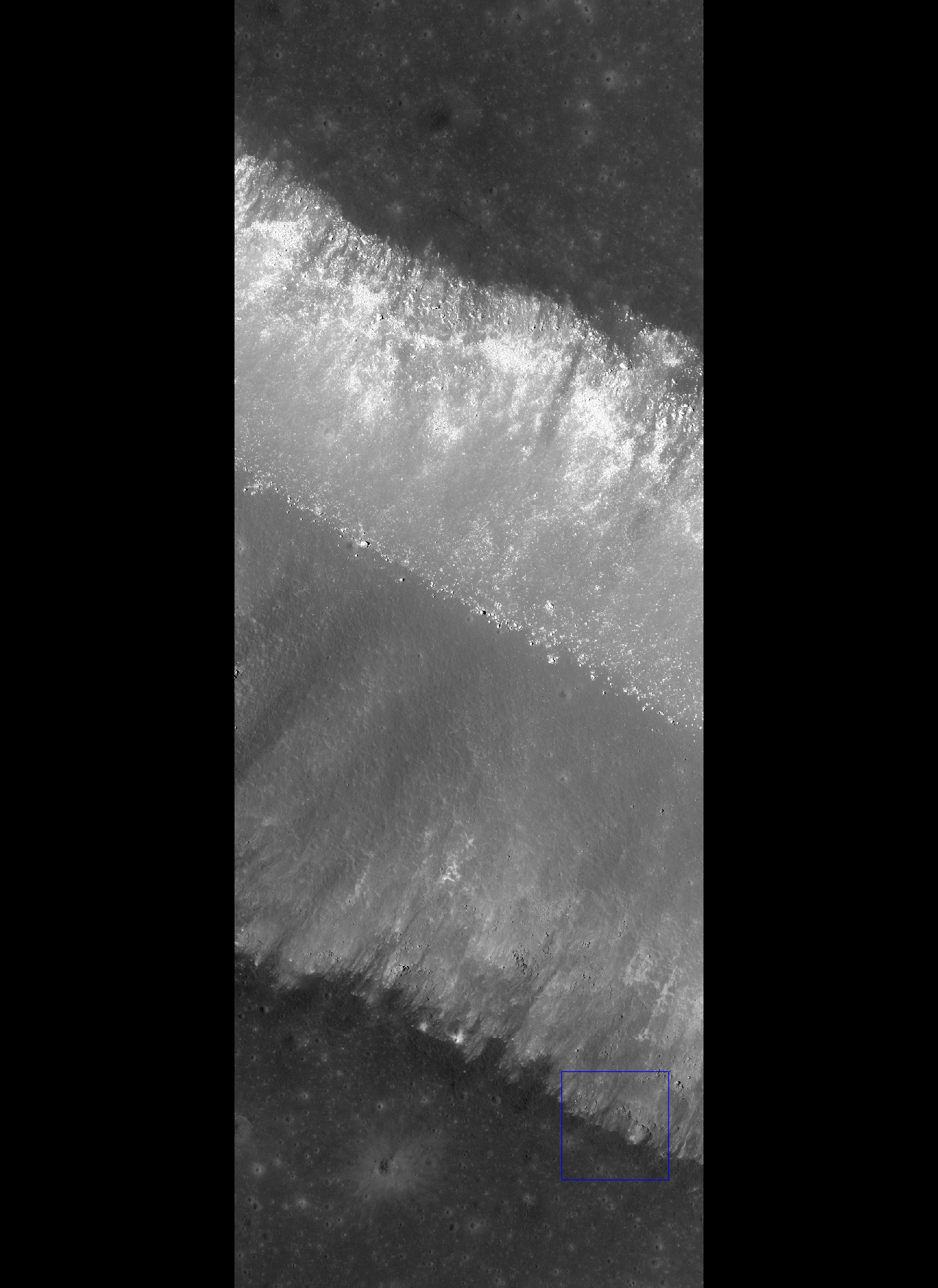 As seen in the NAC zoom out view (above), there is a sharp boundary between the slope covered by relatively high reflectance materials and the dark, possibly pyroclastic materials at the top of the flat area surrounding the vent. The sharp boundary of the two different layers shows the stratigraphic bedding plane. Other rim portions of this vent were collapsed and the dark materials slid down the slope, so it is hard to recognize the bedding plane.