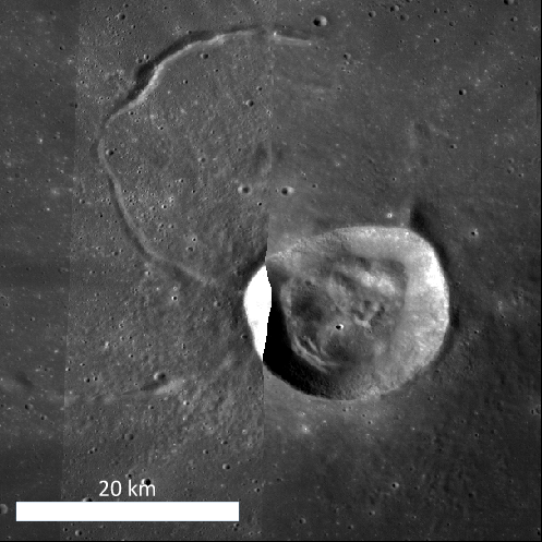 Lichtenberg crater (19 km in diameter) is located in western Oceanus Procellarum. Originally thought to be Copernican in age due to its visible ray system, Lichtenberg is now thought to be Eratosthenian in age. It turns out that Lichtenberg rays are highly reflective due to their composition and not their relative youth (compositional ray vs maturity ray). Today's Featured Image is an oblique view of Lichtenberg crater and the surrounding terrain. Oblique images are similar to what an astronaut in orbit around the Moon would see looking out a window towards the horizon, and these views are different than most of the LROC NAC images that are taken at nadir (looking straight down). Because oblique images are taken by looking at an angle, these images can enhance or reveal features that may not be evident when looking straight down. For example, Lichtenberg's raised rim is prominent in this image, as is the topographic high within the ghost crater beside it. The diameter of the ghost crater (29 km) suggests that it is a complex crater with a central peak that was subsequently buried by mare basalts. Perhaps a now deeply buried central peak is reflected in the surface as a distinct topographic high in the center of the ghost crater? It is the presence of this flooded crater that caused Lichtenberg to form in an asymmetrical fashion. This viewing geometry also enhances Lichtenberg's textured ejecta blanket, revealing a partial embayment of the ejecta on the eastern side. By applying our understanding of the principles of stratigraphy, the history of this area can be unraveled. A complex crater formed on the surface and was buried by mare basalt. Then, Lichtenberg formed on part of the partially buried rim of the ghost crater. Finally, a new flow of mare basalt partially flooded the ejecta of Lichtenberg.