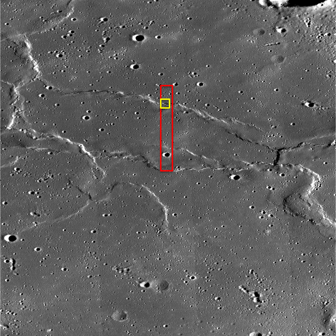 The ropy appearance of the ridges in the WAC context image above are a testament to the complex motion that took place within the rock, indicating multiple directions of stress. Though most of the tectonic activity that produced wrinkle ridges in Mare Frigoris is thought to have occurred ~2.6-3.8 billion years ago, recent work suggests that wrinkle ridges may have formed in this region only 1.2 billion years ago. Believe it or not, that is young (for the Moon at least)!