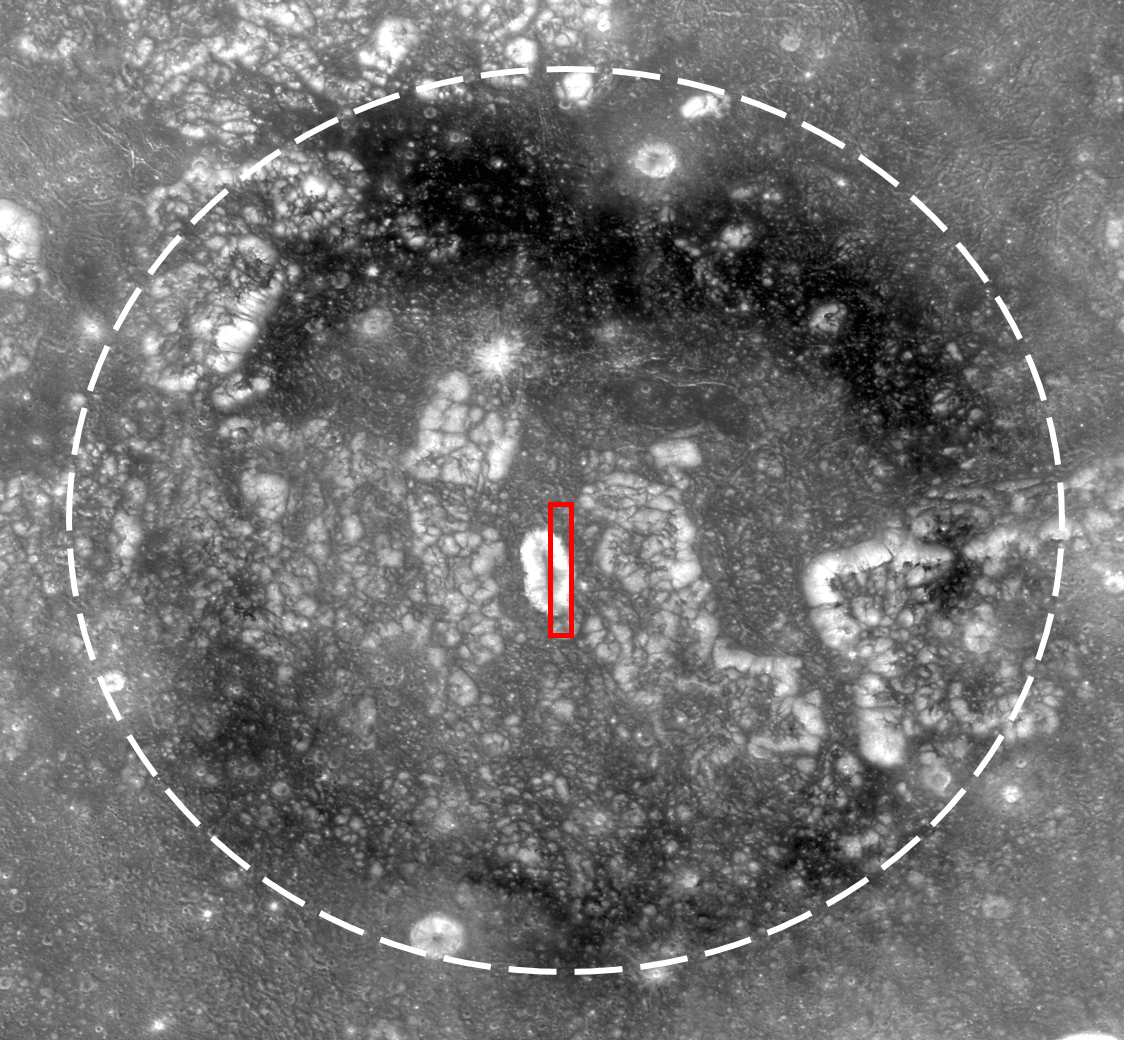 So, where did the low reflectance material come from? The low reflectance material from Today's Featured Image flowed down the wall of a kidney-shaped (reniform) depression located at the center of the annulus. The lack of a discernible crater rim and irregular shape make this depression a suspect (See WAC image below). The walls of the depression are steep-sloped, yet the floor is fairly flat, which is best observed in a color-shaded digital terrain model (DTM). Such reniform depressions are observed in other locations across the Moon, such as Sulpicius Gallus, interpreted to be a pyroclastic source vent. If the kidney-shaped depression is the source of the low reflectance material, it is likely that material was ejected from the source vent at high velocity, creating an umbrella-shaped plume and depositing the dark, fine-grained material in a ring around the vent.