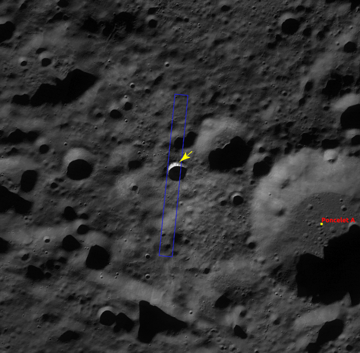 The lower half of this image (relatively high reflectance) is the crater wall, downslope is to the bottom. The bottom-left dark area is the shadow of southern crater rim. Upper half of the image with a low reflectance surface is the crater rim and the rim slope out of the cavity, mostly covered with impact melt. The low reflectance area at the image center just above the steep wall has multiple horizontal cracks showing where the hardened impact melt has cracked as the steep walls slowly fail and slide into the crater bit-by-bit. These slope failures continuously refresh the crater walls, removing the melt coatings and exposing subsurface materials.