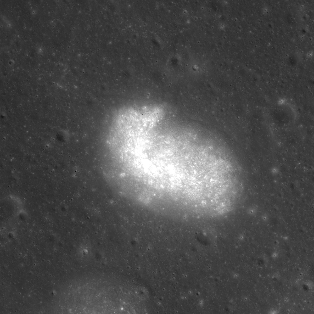 At the southeastern edge of Mare Imbrium, about 25 km west of Rima Hadley, there is a small shiny mound on a dark and flat mare basalt plain, which looks like a white sand island in the middle of a black ocean. The size of this mound is about 2.7 by 2.2 km across. Normally fresh slopes and fresh ejecta have high reflectance due to less space weathering. But this mound is brightest at its top, not down the slopes, and is brighter than nearby ejecta, implying that the mound is composed of higher-reflectance materials than the mare basalts. Then the question is, how was this shiny island was formed?