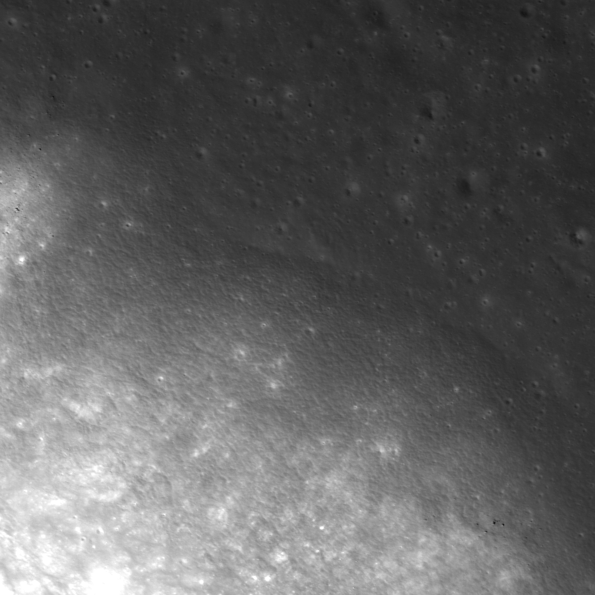 Northeastern edge of a high-reflectance mound, downslope is to the upper-right. Image width is 1512 m, LROC NAC M106869873R [NASA/GSFC/Arizona State University].