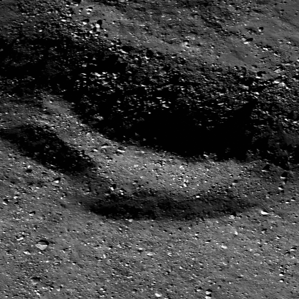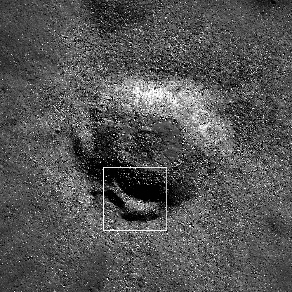 The context image reveals that the terrace doesn't circle the entire crater, similar to how complex craters contain multiple unconnected terraces. But the crater is also very blocky, it probably hit a cohesive layer of basalt hidden under a layer of regolith, so maybe it is a bench. Whichever hypothesis is correct, the Moon is definitely not so simple!