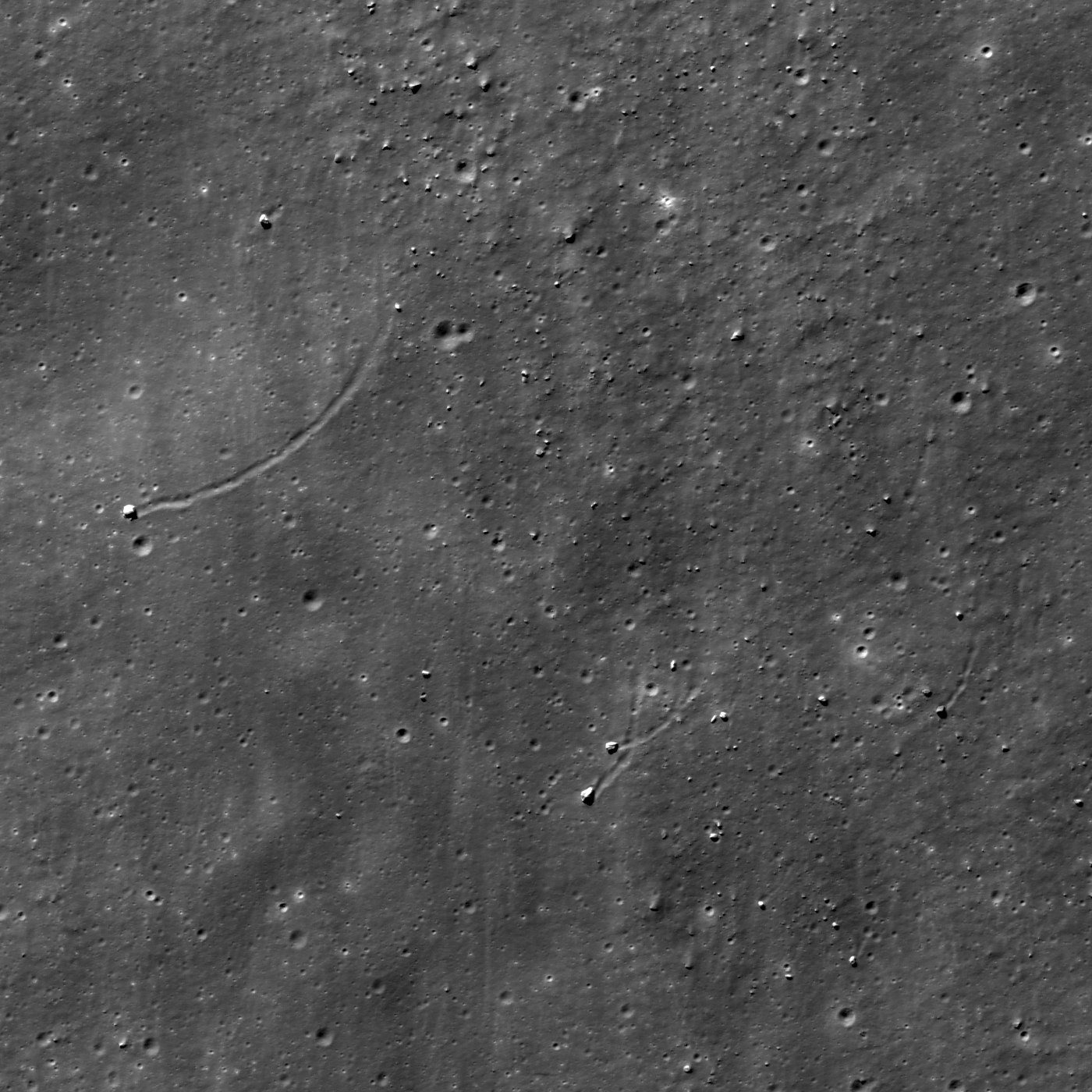 The first clue is in the opening image; the landscape surrounding the boulders is relatively smooth and lightly cratered with small impacts - definitely not the interior crater wall of the nearby fresh crater. The WAC context image provides another clue; these boulders are located on the degraded crater wall of Pikel'ner S crater (49.514°S, 121.122°E). So what is the likely story? Given the location of these boulders with curved trails and their close association with a nearby fresh impact crater, these boulders were probably ejected from the crater cavity, flung far afield, and landed on the degraded interior wall slope of Pikel'ner S crater. The boulder trails are continuous and smoothed, like a marble rolled down a pile of sand, as opposed to disconnected, like a marble bounced down the same sand pile. These observations may provide information about boulder velocity, boulder shape, angle at which the boulder struck the surface, and the coherence of the surface (fluffy versus compacted regolith). Upon landing, the boulders began to travel downhill, forming curved paths according to the local slope, and the small wiggles observed in the trails likely represent the irregular shape of the boulders (because real rocks are not spherical like marbles). The scenario outlined above is strengthened by the observation that the four boulders, which range in size from ~7 m to 9 m, have similarly-shaped curving paths that are sub-parallel. What an exciting geologic location!